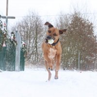 Ahoj, já jsem Bóža. Říkají o mně, že jsem báječný kluk, a něco na tom asi bude. Mám rád procházky, ale spíš kratší. Jakmile se stočíme zpátky k útulku, hned zrychlím, protože domů se přece chodí svižně. Jídlo je moje velká láska. Umím si o něj i pěkně říct! Aby na mě náhodou nezapomněli s večeří... Krásně jsem díky jídlu přibral a dneska jsem zkrátka fešák, na kterého je radost se dívat. Rád si hraju, nejvíc mě baví míčky, které ochotně nosím a podbízím se s nimi pořád dokola. Mám rád lidi, hlavně děti, a nejšťastnější budu, když budu moci být součástí rodiny. Nechci být venkovní pejsek, hledám domov jen uvnitř, kde budu s vámi sdílet každodenní život. Zimu fakt rád nemám, nedělá mi to dobře na tělo. Ale jinak jsem zdravý, naočkovaný a připravený najít svůj nový a trvalý domov.