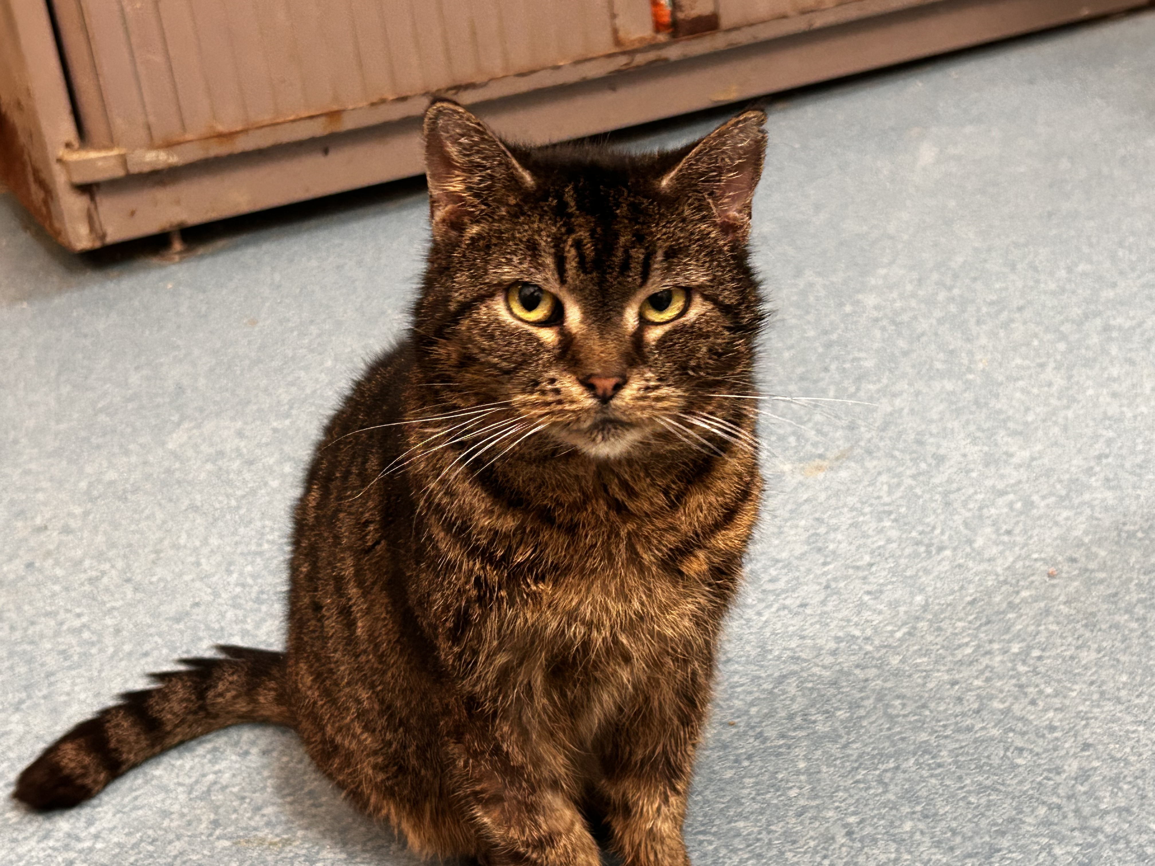 Siri našla paní v lese v Jesenicích. Bylo to tehdy odrostlé koťátko, velmi divoké a zbídačené. U nás se dala dohromady, ale byla bohužel stále hodně plachá. A tak u nás zůstala. Postupně si zvykala, trvalo to dlouho, ale nakonec to zvládla a ochočila se. Už jsme se chystali, že jí nakonec najdeme domov, ale osud to tak nechtěl. Vše to začalo tak, že Siri začala mít problémy se zuby. Původně jsme mysleli, že má Siri nádor, ale ukázalo se, že se jedná pouze o eosinofilní granulom na kořeni jazyka. Ten Siri v životě příliš nevadí a s trochou individuální péče žije plnohodnotný život. Může proto odjet do nového domova s příslibem, že se na tento její problém nezapomene.